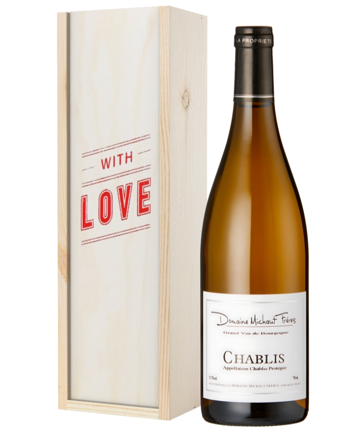 What better way to celebrate Valentine’s Day than with an extra special bottle of white wine? Treat you and/or your loved one to a single bottle of French Chablis white wine to enjoy over a romantic meal together. It’s beautifully presented in one of our wooden gift boxes with ‘With Love’ printed on the lid and wood wool lining for protection. It’s every white wine lover’s dream! You can complete this gift with a personalised message and have it delivered anywhere in the UK with next day or selected date delivery. So no matter where you are or how you’re celebrating, you can do it in style with this exceptional white wine gift.