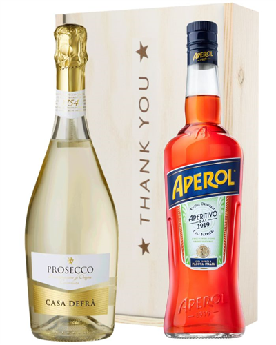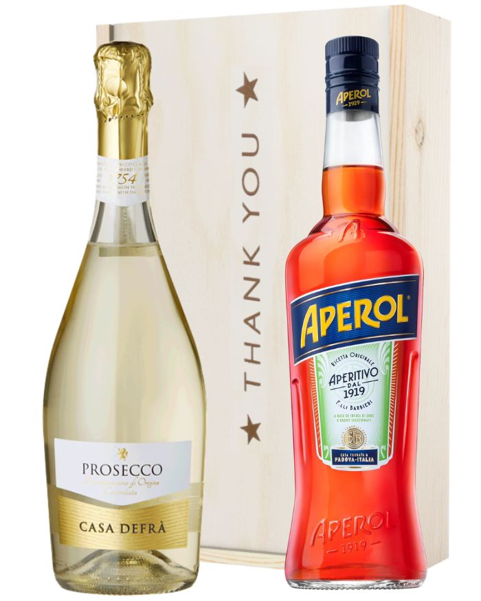Are you looking for a special way to show your appreciation? Look no further than Aperol Spritz Thank You Gift Set. Our gift set includes everything needed for the perfect Aperol Spritz, plus it comes in a beautiful wooden gift box with the words Thank You printed on the lid. Add your own personal message and let them know how much they mean to you! This classic Italian apéritif is sure to make someone feel special. With its bright orange hue and sweet-tart taste, an Aperol Spritz always brings good cheer — what better way to show your gratitude? The Casa Defra Prosecco gives this gift set an extra bit of sparkle that’s sure to delight any lucky recipient. Order by 4 pm for free next day delivery across the UK!