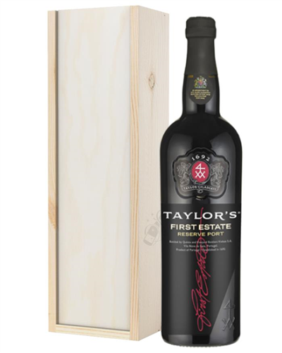An amazing gift box that features a single bottle of Taylors First Reserve Port placed within it; not only is this present perfect for sending to anyone that loves the full flavour of a high-quality Port, it’s also incredibly stylish in overall appearance as well. Easy to customise with a personal message that is included along with it for delivery, this Taylors First Reserve Port Gift Box is presented in a simple but chic wooden box that is fully lined with wool to assure it arrives safely to its destination every single time its ordered. A great gift to send for any especially stylish event or occasion, any time of the year.
