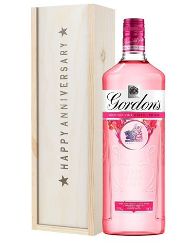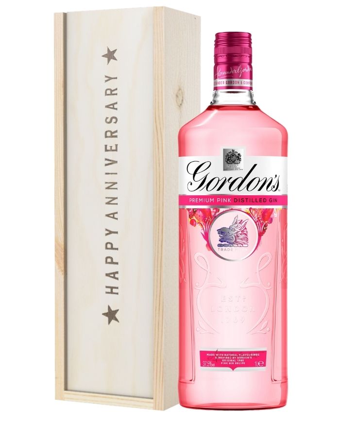 Perfectly pink, truly tasty and absolutely stunning from the inside out; this Pink Gin Anniversary Gift Box boasts everything you need in a one-of-a-kind present for the gin-lover in your life celebrating a special anniversary. Simple to personalise with a message from you if needed, this gorgeous gift set is presented in a sturdy wooden gift box lined with wood wool and branded with the words ‘Happy Anniversary’ clearly on top. Offering delightful flavours including raspberries, strawberries and red currants, the single bottle of Gordon’s Premium Pink Distilled Gin housed inside this gift box will bring instant satisfaction to your spouse, significant other or anyone else lucky enough to receive it.