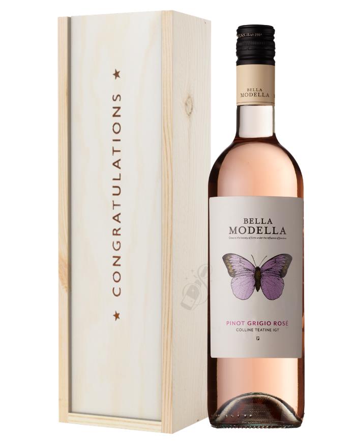 Pinot Grigio Rose Wine Congratulations Gift In Wooden Box