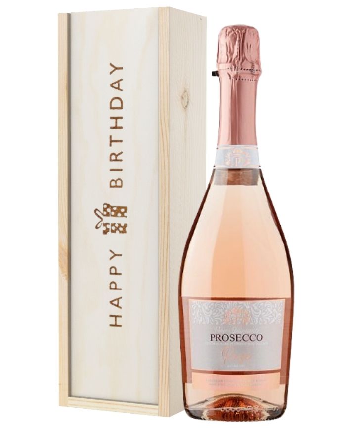 Give someone the most delicious and delightful birthday gift yet with our Prosecco Rose Birthday Gift! Whether they’re turning 18 or 80, let someone pop open and enjoy a single bottle of Italian Prosecco Rose on their special day. Perfect to pair with fish or seafood dishes, this Prosecco is refreshingly dry with notes of Citrus, Rose and Strawberry and is suitable for vegans. It’s presented in one of our wooden gift boxes with ‘Happy Birthday’ printed on the lid and is protected with wood wool lining. You can complete this gift with a personalised message and send it anywhere in the UK with next day or selected date delivery. There’s no better birthday gift for a Prosecco-lover!