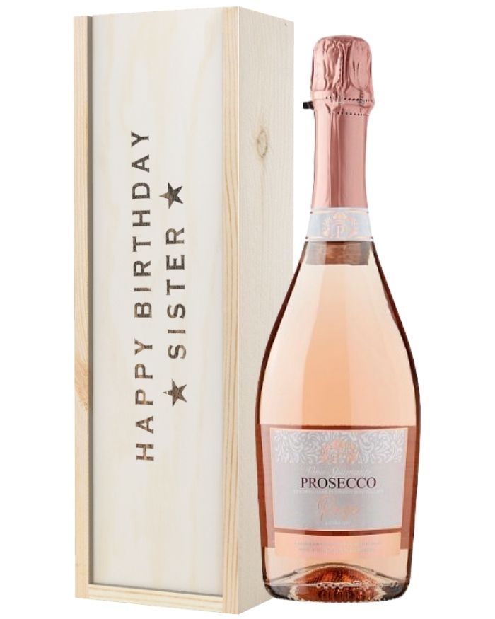 Give your sister a birthday gift she’ll adore with our delicious Prosecco Rose birthday gift. Let her celebrate in style with a single bottle of Italian Prosecco Rose delivered straight to her door. It’s perfect to go with fish and seafood, bursting with fruity and citrusy flavours and suitable for vegans. This gift is presented in one of our classic wooden gift boxes with ‘Happy Birthday Sister’ printed on the lid and is protected with wood wool lining for safe delivery. You can also add your own personalised message to this gift for that extra touch. Next day or selected date delivery is available across the UK, making it the perfect gift to send no matter how far away your sister lives.
