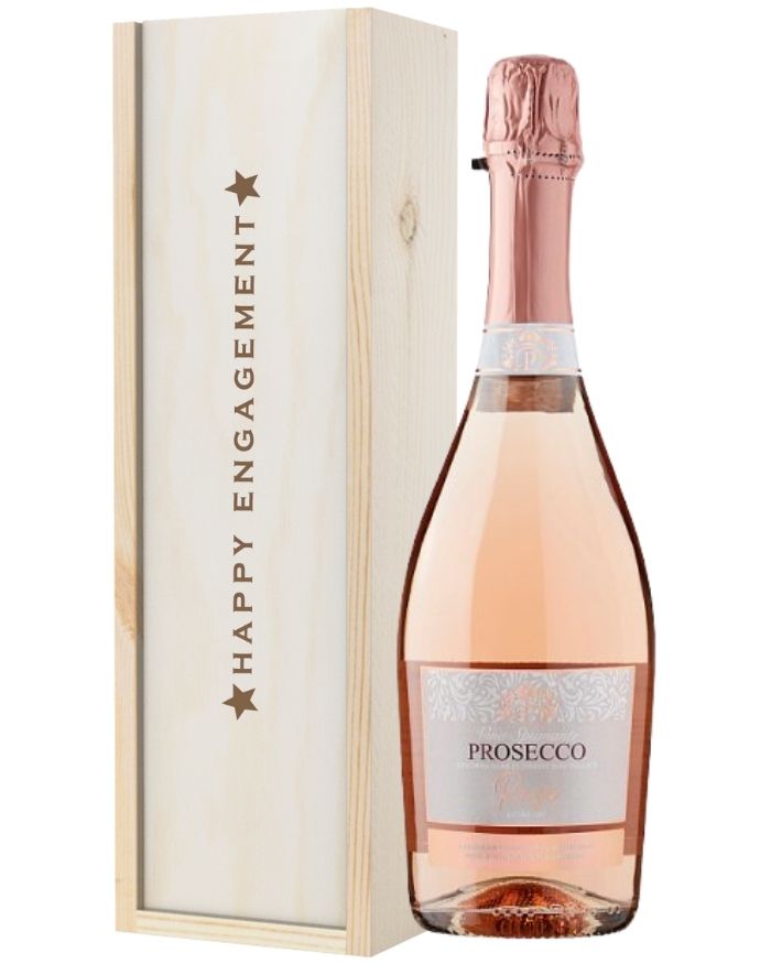 Let the happy couple toast their new chapter together with this delicious engagement Prosecco gift. No matter how they’re celebrating, treat the couple to a single bottle of Italian Prosecco Rose to enjoy together. Ideal for vegans, this Prosecco is extra dry with balanced notes of Citrus, Rose and Strawberry. It’s presented in one of our wooden gift boxes with ‘Happy Engagement’ printed on the lid and is protected with wood wool lining. Plus, extend the happy wishes with a personalised gift message. You can send this gift anywhere in the UK with next day or selected date delivery. There’s no better engagement gift than this one.