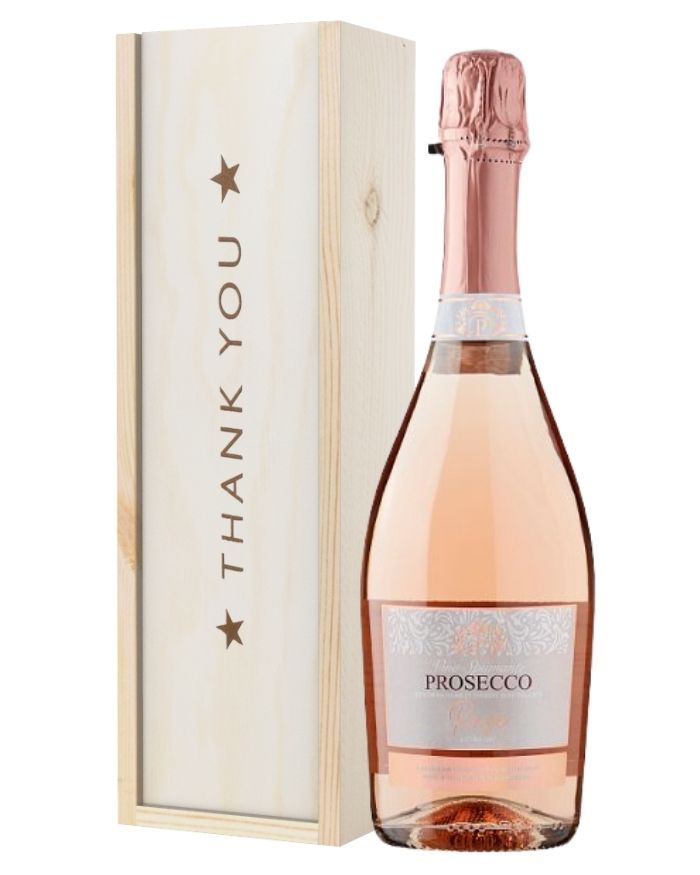 Looking for a thank you gift for someone who loves Prosecco? This gift is sure to show your gratitude! No matter the reason for thanks, treat someone to a single bottle of Italian Prosecco Rose to enjoy. Suitable for vegans, this Prosecco is extra dry with notes of Citrus Rose and Strawberry. It’s presented in one of our classic wooden gift boxes with ‘Thank You’ printed on the lid and is protected with wood wool lining. You can add your own personal thanks with a personalised message. Send this gift anywhere in the UK with next day or selected date delivery for the perfect surprise. It’s an ideal gift for any Prosecco lover.