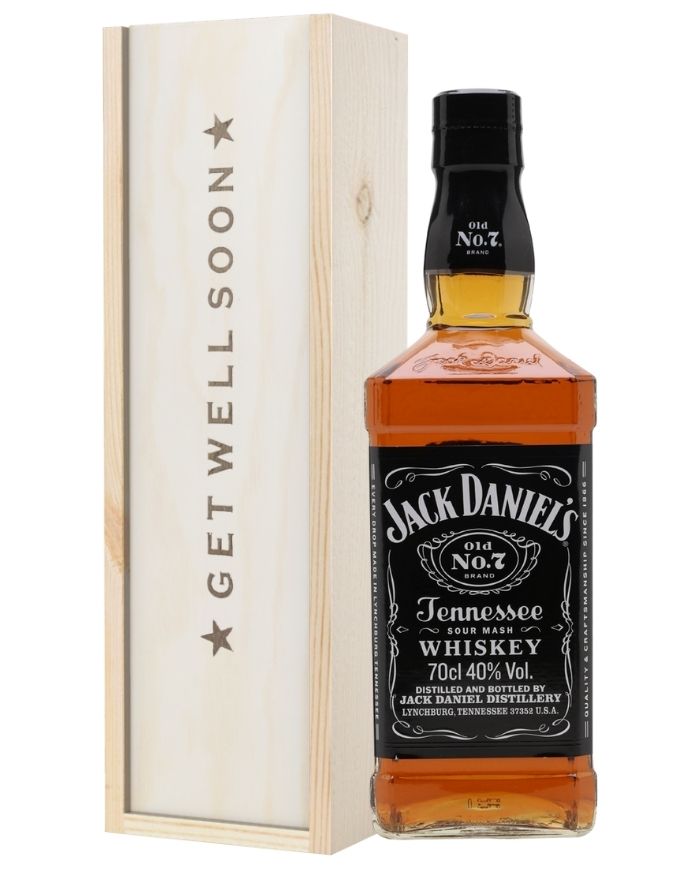 A well-made and one-of-a-kind gift set from front to back, this truly wonderful Whiskey Get Well Soon Gift Box boasts amazing style, flavour and sophistication you simply won’t get from any other present option on the market. Featuring a single bottle of Jack Daniels Old No.7 Sour Mash Whiskey and offering nothing but amazing flavours from the first drink down the last; this gift set is also incredibly easy to personalise with a message from you included along with it if desired. Delivered in a sturdy wooden gift box and lined with wood wool all throughout the inside, this gift set is also branded with the words ‘Get Well Soon’ clearly on top and will have anyone that receives it feeling better from the instant it arrives.