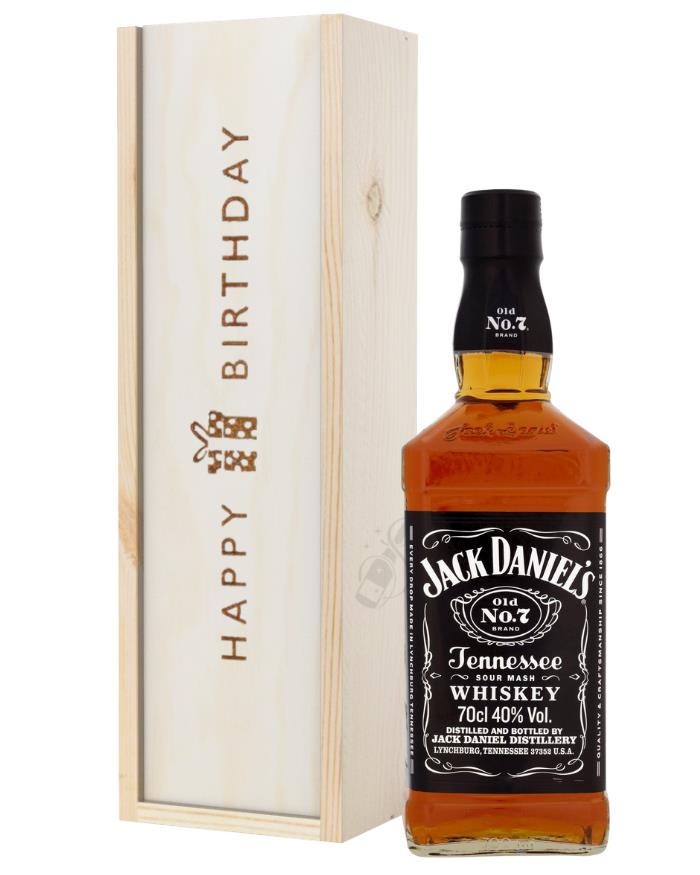 Featuring smooth and remarkably bold flavours from start to finish and a remarkably sophisticated appearance from the outside in; this Jack Daniels Tennessee Whiskey Birthday Gift Box provides everything you’ve been searching for in a one-of-a-kind birthday present option. Easy to personalise with a message from you and presented in a solid wooden gift box with the words ‘Happy Birthday’ printed on top, this amazing gift set also includes a single bottle of Jack Daniels Old No. 7 Tennessee Whiskey within it that perfectly satisfies anyone fortunate enough to receive it. Send this chic birthday gift to your best mate, your brother, your cousin, or even a parent and wish them a happy birthday in a whole new way this year.
