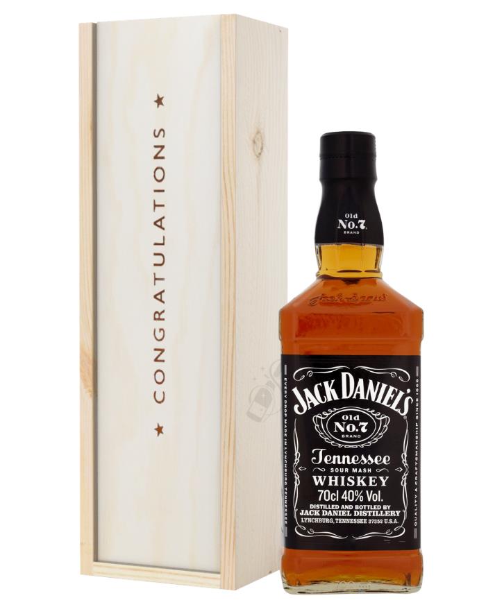 Jack Daniels Tennesse Whiskey Congratulations Gift In Wooden Box