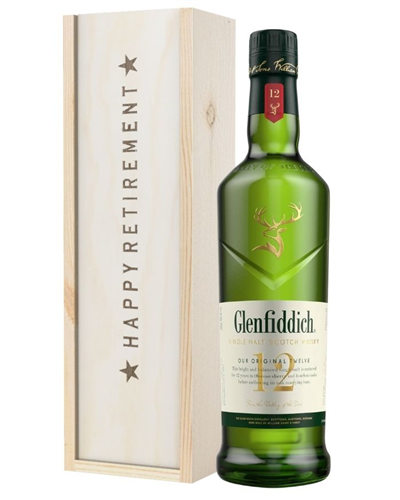 A wonderful retirement gift for any whiskey-lover in your life. Delivered in a solid wooden gift box lined with wood wool to ensure secure delivery to nearly any location, this Whiskey Retirement Gift Box also boasts the words ‘Happy Retirement’ clearly emblazoned on top as well. Simple to customise with a personal message along with it if desired, this gift set includes a single bottle of Glenfiddich 12-Year-Old Single Malt Scotch Whiskey and features an extraordinary flavour that no other present option on the market can provide. Feel truly confident sending this gift box to anyone; your father, your friend, or even a long-time colleague from work.