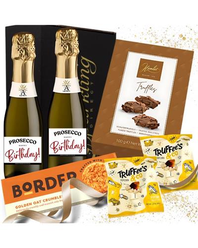 - 🎂 Mini Birthday Proseccos – 2 x 200ml Galanti Prosecco bottles with “Happy Birthday” labels.