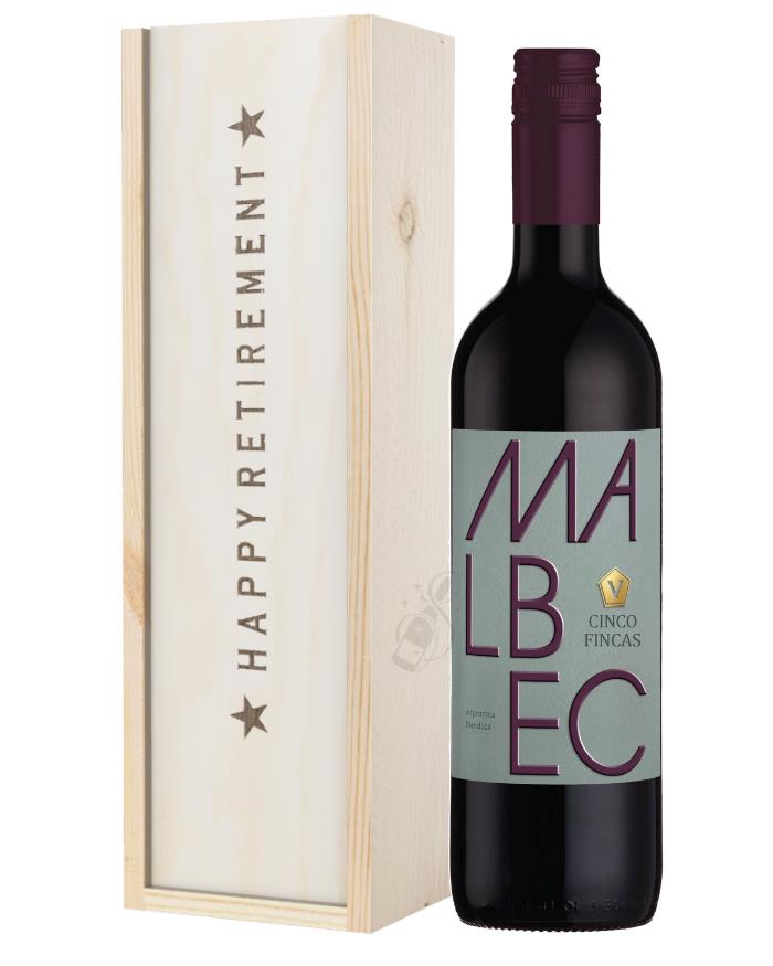 A remarkably trendy retirement gift that offers unmatchable class and sophistication from top to bottom. Complete with a single bottle of Argentinian Malbec Red Wine and boasting an amazingly bold and delicious flavour unlike any other, this Wine Retirement Gift Box makes the perfect present for any wine-lover that is fortunate enough to experience, and celebrate, their retirement this year. Easy to personalise with a message from you if desired; this gift set is delivered in a solid wooden gift box that is branded with the words ‘Happy Retirement’ and comes lined with wood wool to ensure secure delivery to any location.